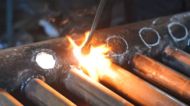 Обязательно после завершения работ данного этапа проводим опрессовку теплообменника, проверяя качество сварки давлением 10 Атмосфер.