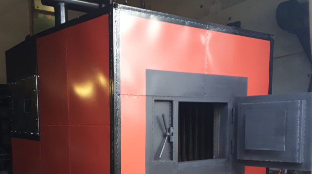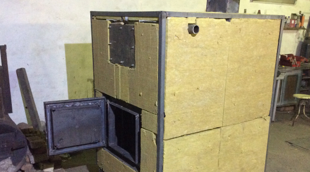 Теплоообменик обшиваем стальными листами для предотвращения выделения газов и дыма в окружающую среду. В конструкции предусмотрены лючки для чистки, шибер дымохода, другие функциональные отверстия, в том числе для шнековой подачи топлива.
